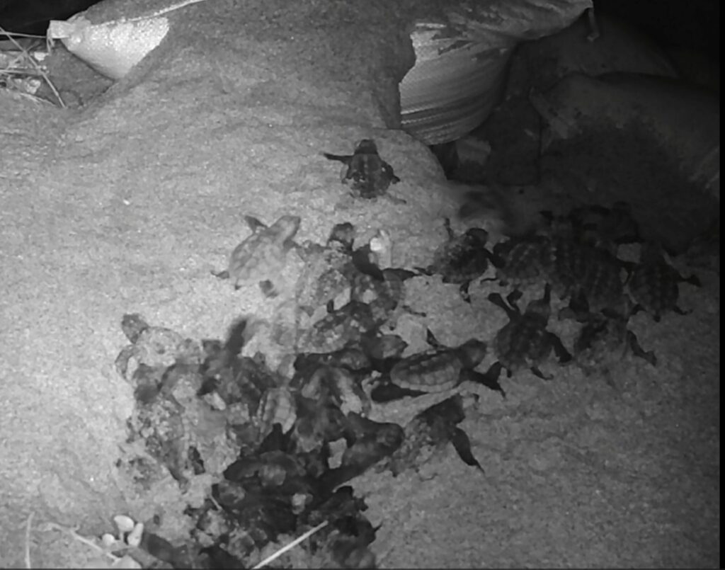 その8日後に無事に多くの子ガメが孵化し、巣から脱出